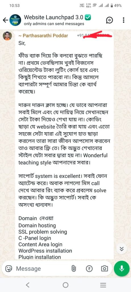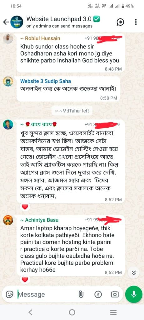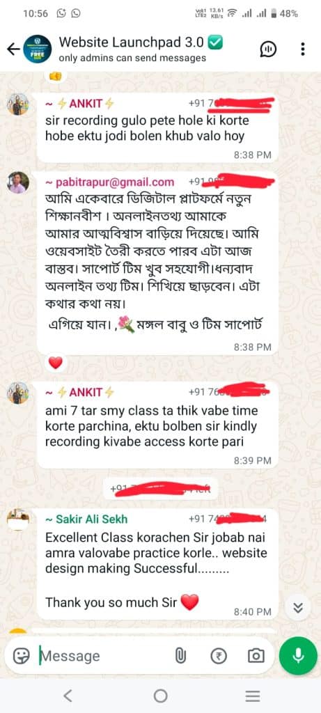 ওয়েবসাইট ডেভেলপমেন্ট এর ক্লাসে WhatsApp গ্ৰুপে Join হন। গ্রুপের লিংক পাবেন রেজিস্টার করার পর